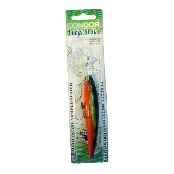 Воблеры CONDOR - это прекрасные приманки для ловли любой хищной рыбы. Модельный ряд и выбор расцветок огромен. Компьютерное проектирование, тщательно продуманный дизайн, безупречное качество исполнения и прорисовка мельчайших деталей обеспечивают гарантированную работоспособность и уловистость. Весь арсенал воблеров CONDOR имеет прочный корпус, покрытый твёрдым защитным лаком, внутри капсула - погремушка и надёжная арматура. Воблеры CONDOR, в зависимости от версии, демонстрируют отличную гидродинамику как на малых так и на больших глубинах, подражая движениям больной или ослабленной рыбки. Оснащены острейшими тройниками "MUSTAD"